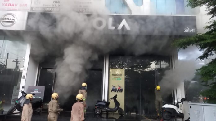 इंदौर। इंदौर में गीता भवन स्थित एक इलेक्ट्रिक वाहन के शोरूम में गुरुवार दोपहर आग लग गई। अचानक लगी आग से इलाके में अफरा तफरी मच गई। बताया जा रहा है की गीता भवन चौराहे पर ओला कंपनी के दोपहिया वाहन का शो रूम है जिसमे आग लग गई। आग की सूचना मिलते ही फायर ब्रिगेड की टीम मौके पर पहुंची और आग पर काबू पाया। फिलहाल आग लगने के कारण पता नही चल सका है। जांच के बाद ही कारण पता चल सकेगा।