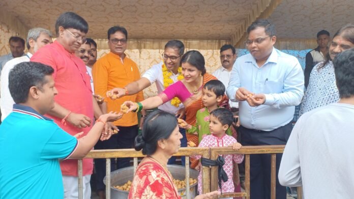 इंदौर। विश्व प्रसिद्ध खजराना गणेश मंदिर में शनिवार से 10 दिनों गणेशोत्सव की शुरुआत हो गई है। इंदौर कलेक्टर आशीष सिंह ने सपत्नीक खजराना श्री गणेश मंदिर में पूजन अर्चन कर गणेश महोत्सव का शुभारंभ किया। इस अवसर पर उन्होंने श्रद्धालुओं को प्रसाद का वितरण भी किया। इस मौके पर संभागायुक्त दीपक सिंह ने भी अपनी धर्मपत्नी के साथ खजराना श्री गणेश मंदिर में पूजन अर्चन किया। इस मौके पर पुलिस कमिश्नर राकेश गुप्ता और नगर निगम आयुक्त शिवम वर्मा भी मौजूद थे। उल्लेखनीय है कि प्रतिवर्ष अनुसार इस साल भी गणेश उत्सव पूरे धूमधाम से मनाया जायेगा। मथुरा (वृन्दावन) की आदर्श बाल कृष्णा रामलीला मंडली द्वारा 10 दिवस तक श्री गणेश लीला का मंचन प्रवचन हॉल में किया जाएगा। गणेश उत्सव के तहत पूरे दस दिन तक भगवान श्री गणेश को विभिन्न प्रकार के लड्डूओं का भोग लगाया जायेगा।