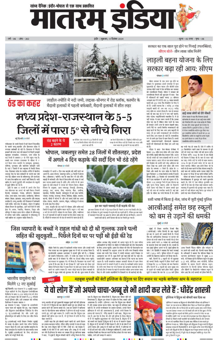 मातरम् इंडिया न्यूज पेपर 13 दिसंबर 2024